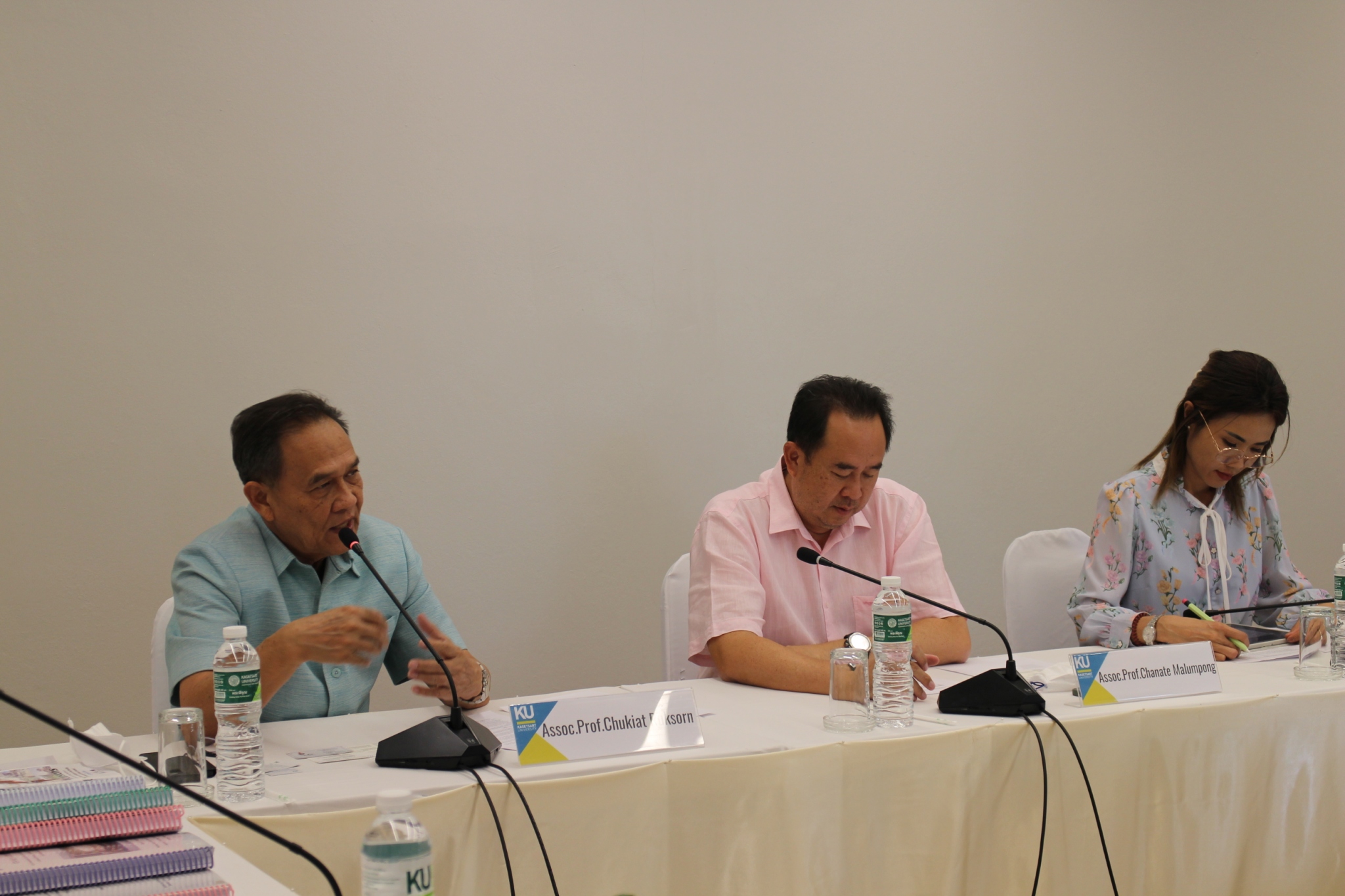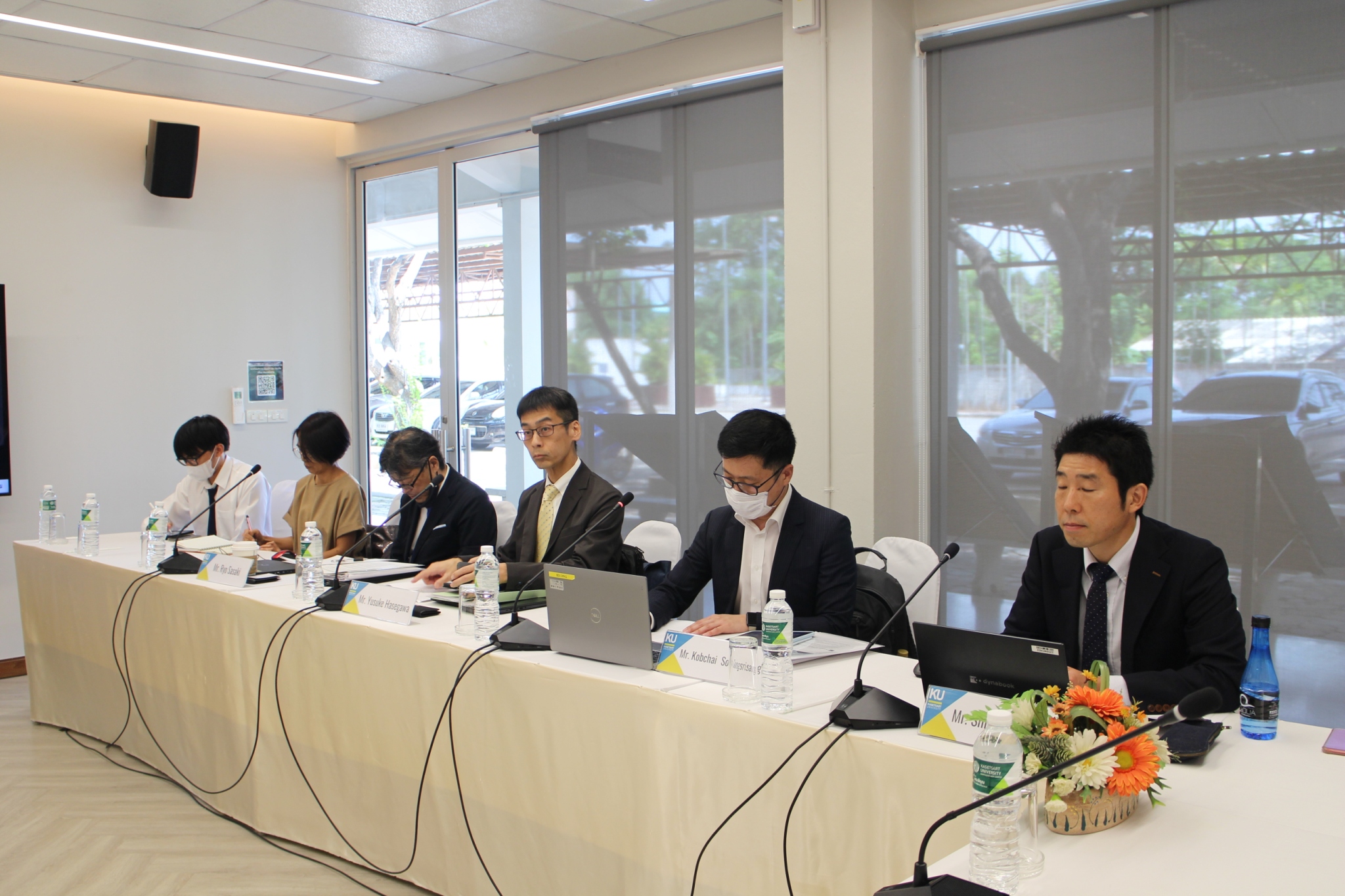 The evaluation team from the International Development Center of Japan (IDCJ), commissioned by the Japan International Cooperation Agency (JICA), participated in site visits and interviews with project stakeholders. Dr.Kanyarat Chiewvech, Director of the Office; Assoc.Prof.Chukiat Ruksorn, Course Advisor; Assoc.Prof.Chanate Malumpong , Course Coordinator; and Ms.Nopporn Lertprasert, Project Coordinator, welcomed the team and provided information.