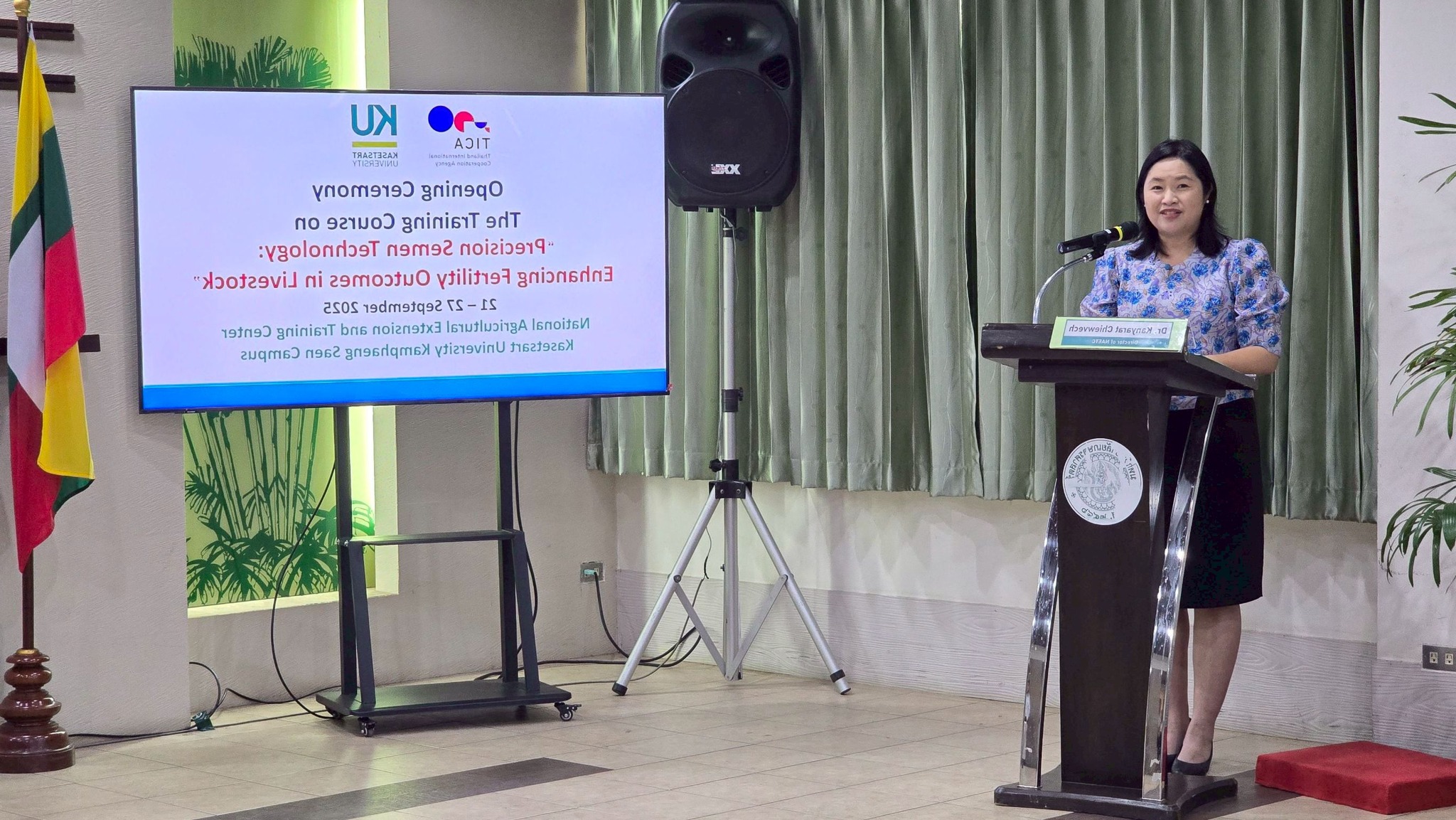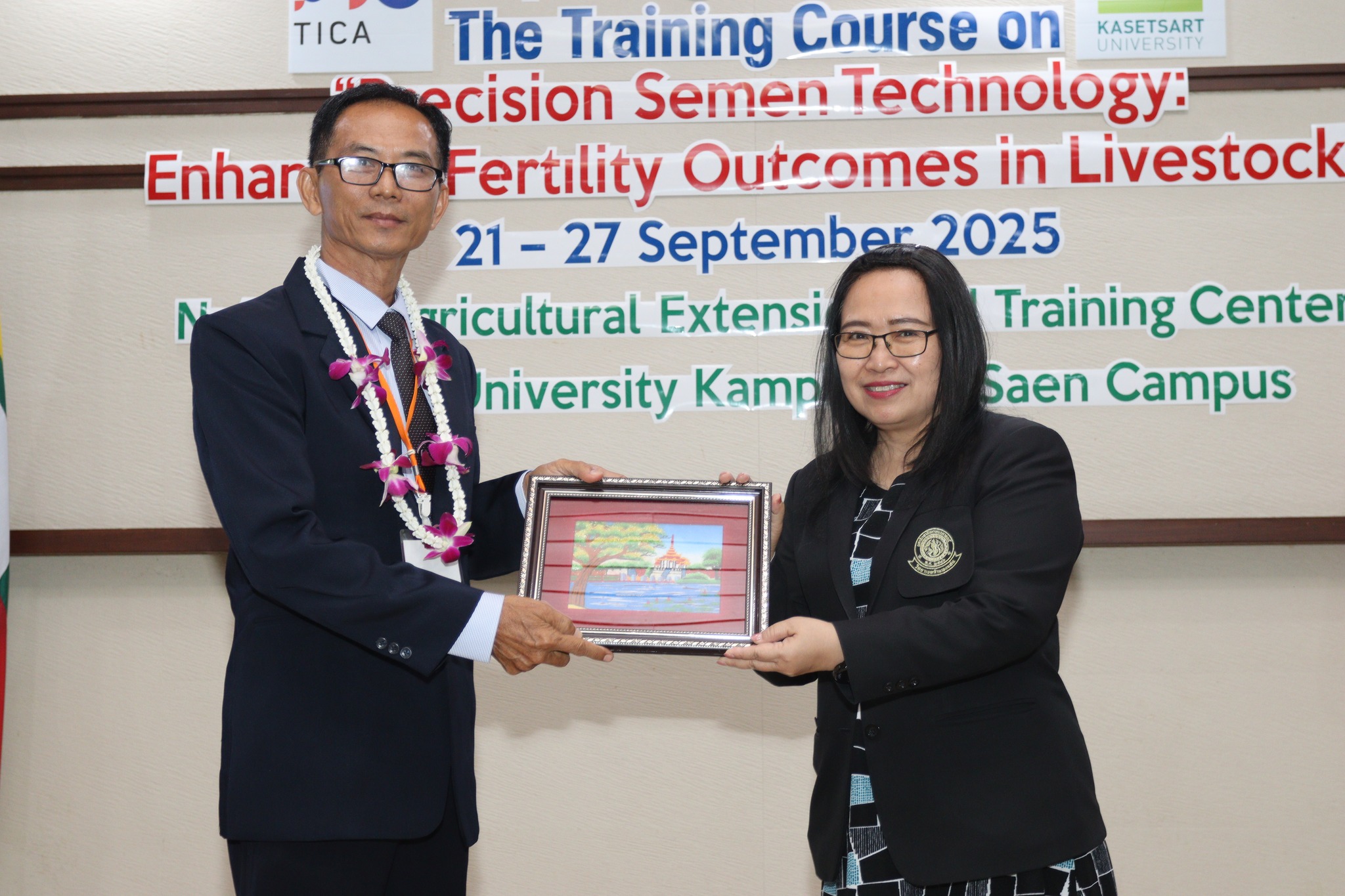 ၂၀၂၅ ခုနှစ် စက်တင်ဘာလ ၂၂ ရက်နေ့တွင်၊ Kamphaeng Saen တက္ကသိုလ်၏ စီမံကိန်းနှင့်လေ့ကျင့်ရေးဌာနနှင့် ကုသရေးတိရစ္ဆာန်ဌာန၊ Kasetsart တက္ကသိုလ်တို့သည် မြန်မာနိုင်ငံ၏ မွေးမြူရေးနှင့် ကုသရေးဌာနဦးစီးဌာန (LBVD) ၏ ဝန်ထမ်းများအတွက် “Precision Semen Technology: Enhancing Fertility Outcomes in Livestock” သင်တန်းအပြည်ပြည်ဆိုင်ရာကို တာဝန်ယူ၍ ဖွင့်လှစ်ပြုလုပ်ခဲ့ပါသည်။