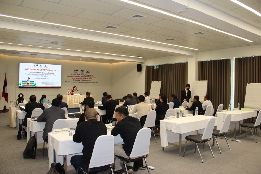 The Office of Extension and Training Kamphaeng Saen (OET.KPS.), in collaboration with the Thailand International Cooperation Agency (TICA) and the Japan International Cooperation Agency (JICA), organized the training program “Sustainable Community Development Program based on the Application of SEP and SHEP” during 23 November – 9 December 2025. The program was attended by 18 agricultural extension officers from the Lao People’s Democratic Republic and 2 agricultural extension officers from Thailand.