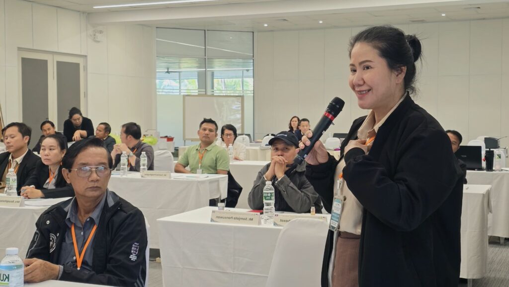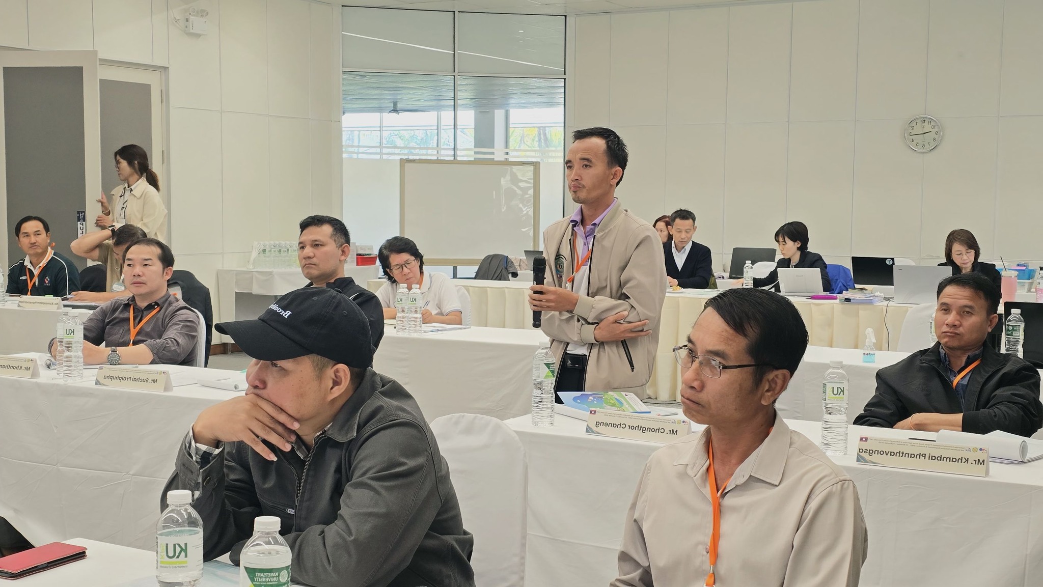 The Office of Extension and Training Kamphaeng Saen (OET.KPS.) organized the training course“Sustainable Community Development Program based on the Application of SEP and SHEP” from 23 November to 9 December 2025 for 18 agricultural extension officers from the Lao PDR and 2 participants from Thailand. On 29 November 2025, a full-day training session was conducted. The morning session covered the topic: “Core SHEP Principles and Concepts 2: Theoretical Backgrounds of SHEP”, which focused on the fundamental concepts and theoretical foundations behind the SHEP approach. In the afternoon, participants continued with the topic: “Information Asymmetry”, addressing situations where trading partners or stakeholders possess unequal information, which may affect decision-making and fairness in the market. Both sessions were honored to have Dr. Jiro Aikawa as the lecturer. The training took place at the King Palm Room, Training Building, National Agricultural Extension and Training Center.